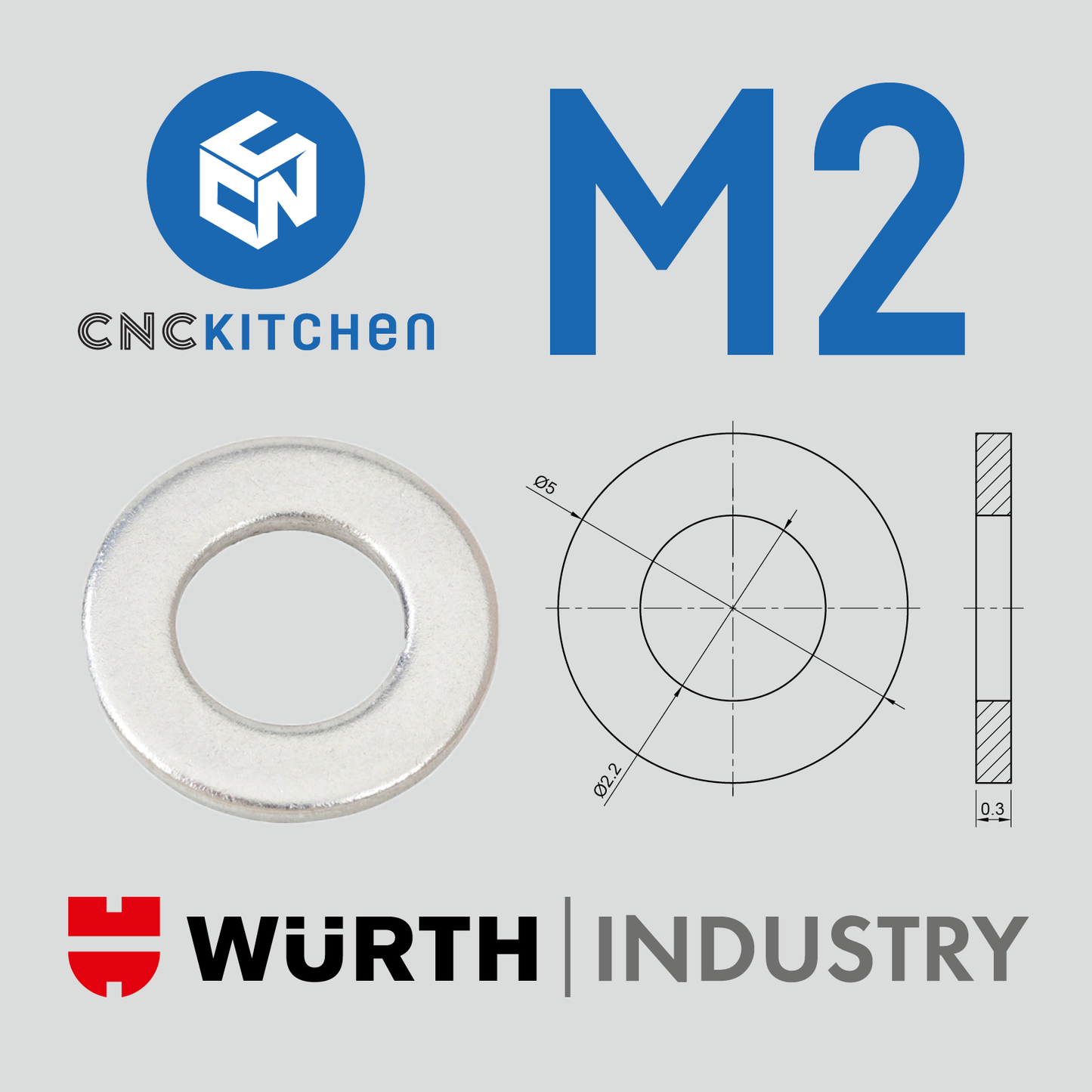 CNC Kitchen Standard alátét (DIN 125), rozsdamentes acél A2, M2 (200 darab)