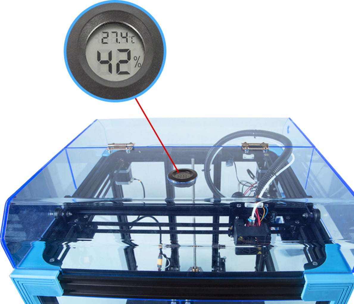 A védőburkolat akril anyagból készült, rendkívül átlátszó, így a nyomtatási folyamat jól látható.