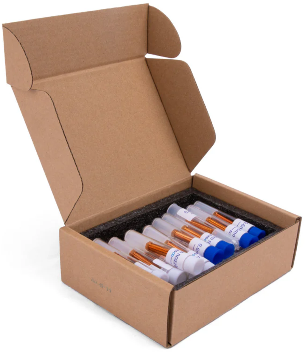 Ez az Elegoo fúvóka szett különböző átmérőket (0,4 mm, 0,6 mm, 0,8 mm és 1,0 mm) kínál, így mindig a tökéletes méretet választhatja ki a projektjéhez. Legyen szó finom részletekről vagy gyors nyomatokról - a készlet minden igényt kielégít.