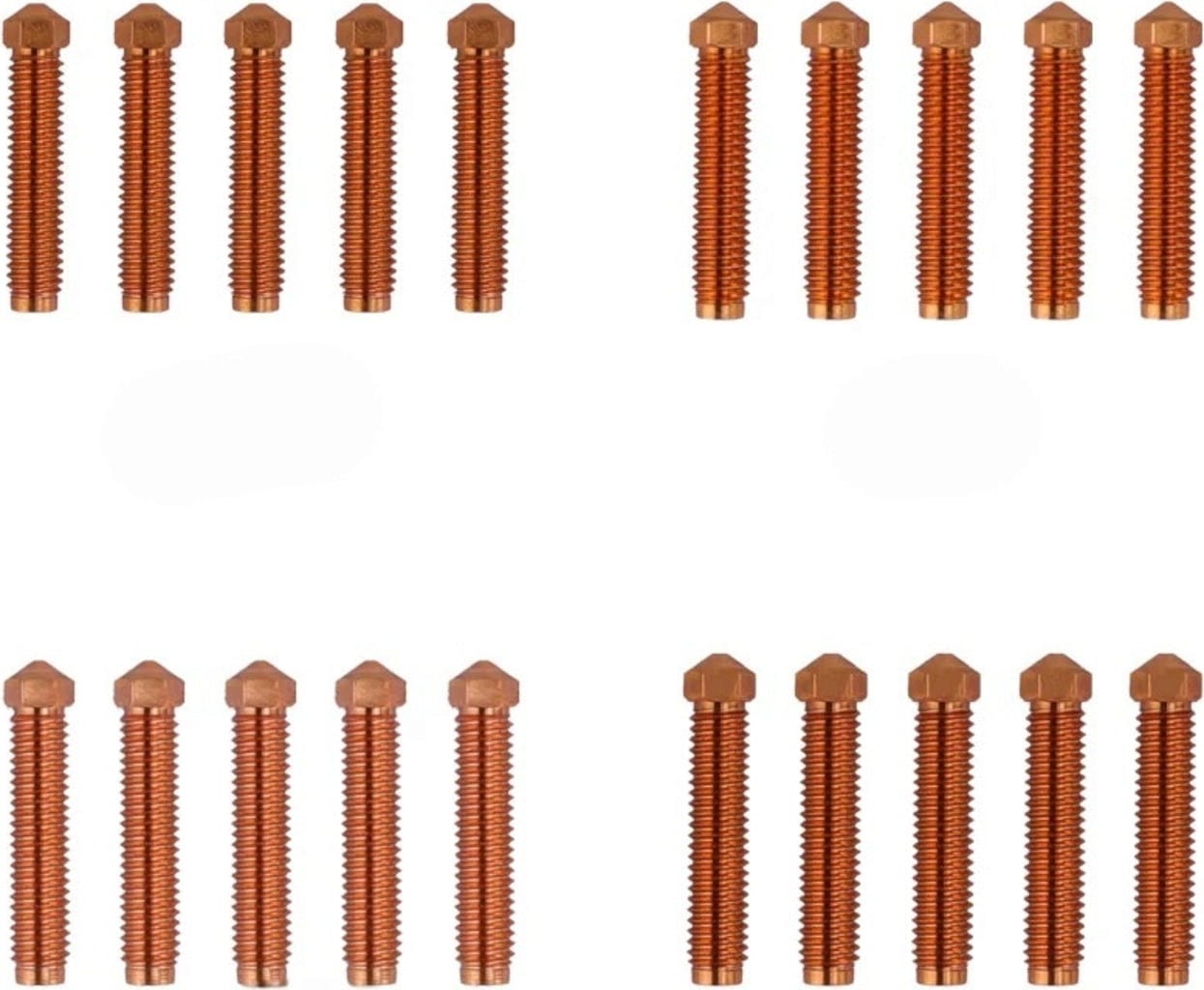 A kiváló minőségű króm-cirkónium-réz ötvözetből készült fúvóka kiváló hővezető képességével nyűgöz le. Hatékony hőátadást és optimalizált hőkezelést biztosít, így egyenletes és gyors felmelegedést biztosít a hibátlan, egyenletesen jó minőségű nyomatok érdekében.