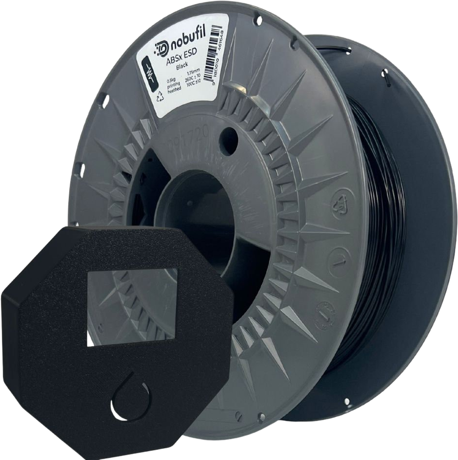 A Nobufil ABSx ESD kiváló minőségű, újrahasznosított ipari hulladékot használ fel, és nagy teljesítményű Filamentté alakítja, amely számos előnyt kínál a nyomtatás során. A célzott anyagmódosításnak köszönhetően lényegesen megbízhatóbban teljesít, mint a hagyományos ABS: kevesebb Warping, kevesebb szag, és a feldolgozás hibátlanul működik még nyitott építőkamrás nyomtatóknál is.