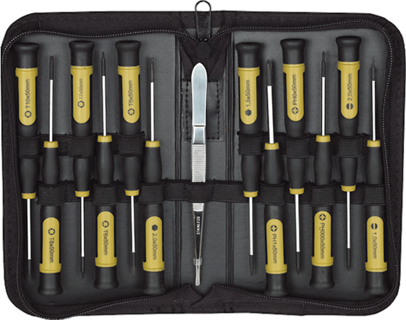 A Proxxon MICRO-DRIVER csavarhúzó szett ideális szerszámkészlet a precíz és ellenőrzött csavarozáshoz – akár műhelyben, modellezéskor, akár útközben. A funkcionális cipzáras tok biztonságos tárolást biztosít, és minden szerszámot rendezetten a helyén tart. A szett egy finom csipeszt is tartalmaz, amely lehetővé teszi a legkisebb csavarok vagy kényes apró alkatrészek biztonságos megfogását és pozicionálását is.