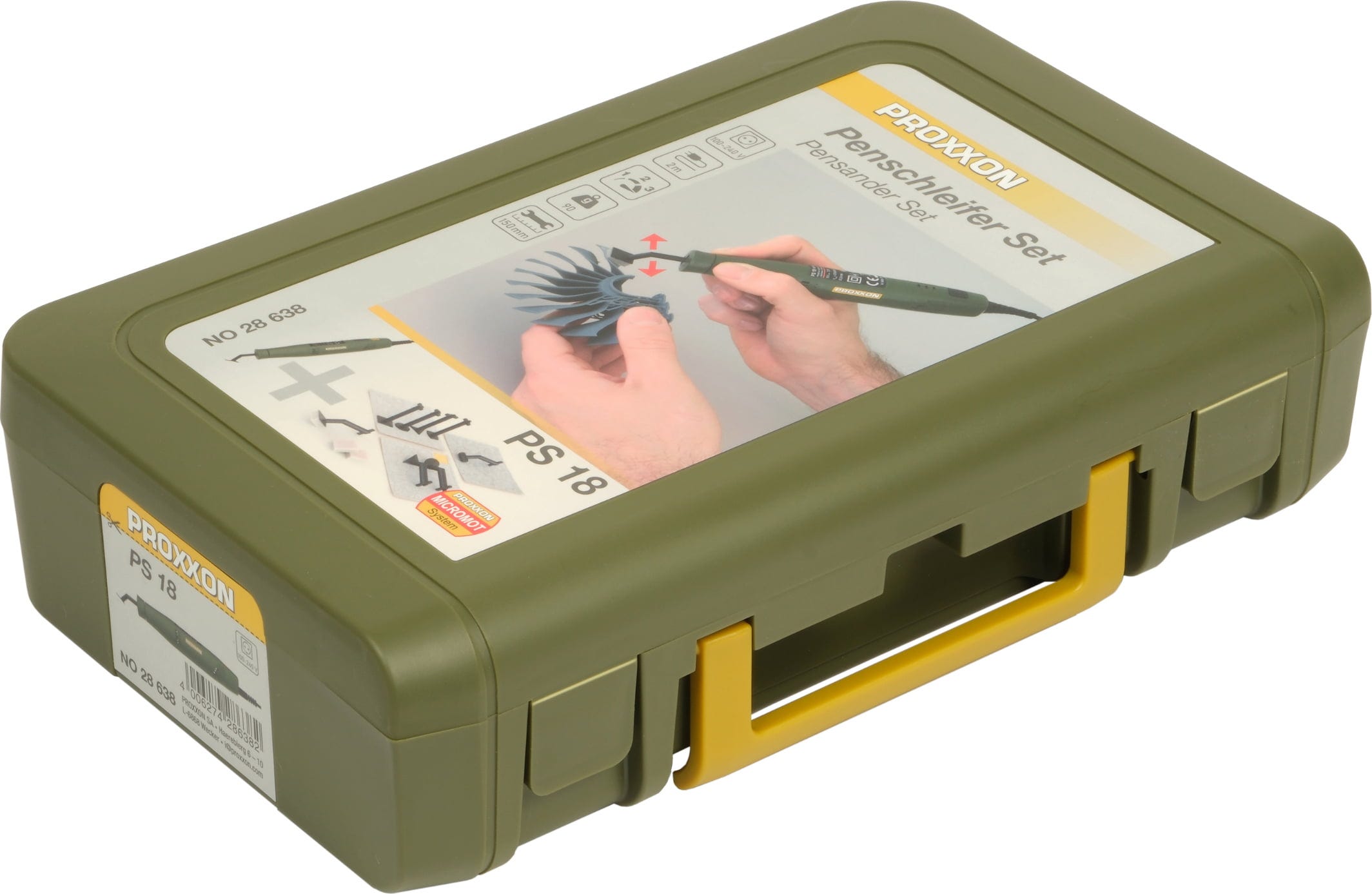 A PROXXON PS 18 csiszoló toll szett ideális megoldás a szűk területeken és nehezen elérhető helyeken végzett precíz csiszolási munkákhoz. Kompakt kialakításának köszönhetően a készülék tökéletesen alkalmas kivágások, rések, rekeszek és kis sarkok megmunkálására.
