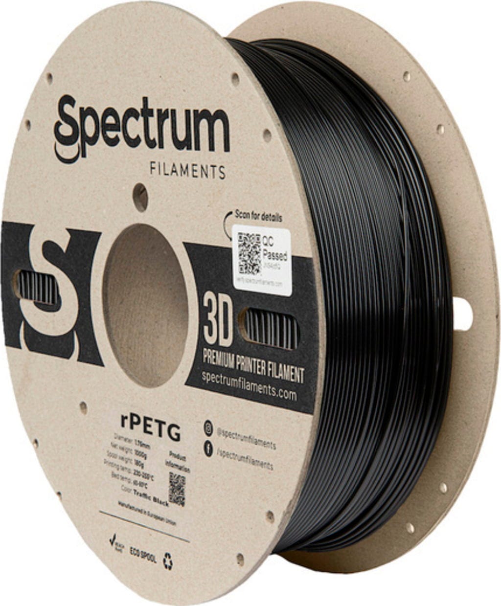 A Spectrum RPETG egy újrahasznosított 3D nyomtatási anyag, amelyet újrahasznosított PETG felhasználásával vagy extrudálási hulladék felhasználásával állítanak elő. A nyersanyagot összegyűjtik, felaprítják, újrakeverik és egy kiváló minőségű, kisebb környezeti terheléssel járó Filamentet készítenek belőle. Az anyag megőrzi a klasszikus PETG tulajdonságait, például a könnyű nyomtathatóságot és az alacsony zsugorodást, és ezeket viszonylag nagy szakítószilárdsággal kombinálja.