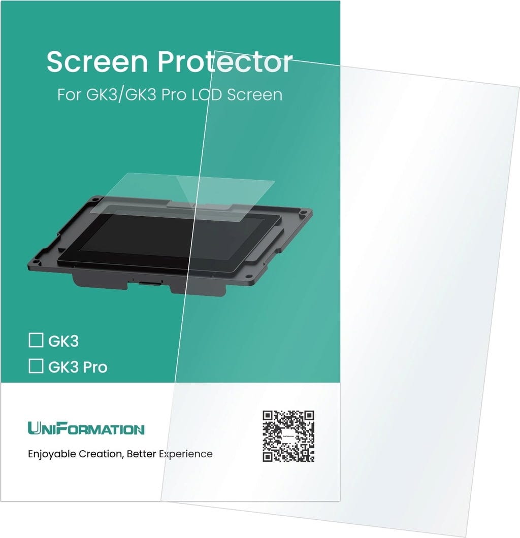 Ez a Screen Protector átfogó védelmet nyújt az Ön UniFormation 3D nyomtatójának, és megbízhatóan óvja az LCD-kijelzőt az ütődésektől, a karcolásoktól és a Resin szivárgásától. Amennyiben a Release Film megsérül, a védőfólia megakadályozza, hogy a kifolyó gyanta beszennyezze a kijelzőt, így védelmet nyújt a drága javítások ellen.